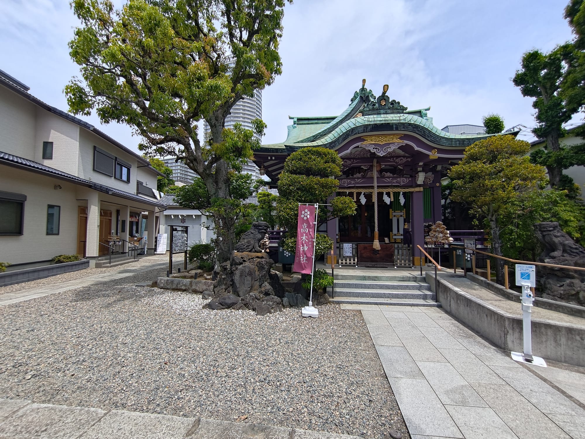 A côté se trouve le Temple Takagi, dont tout tourne autour des boules de riz (entre autres, les onigiris), mais dont le but premier est de célébrer le dieu des marriage et des liens spirituels. Tout viens d'un jeu de mot entre Musubi, un lien entre toutes chose et Omusubi, une simple boule de riz. Il est aussi connu pour sa couleur violette très rare car assez mal connotée.