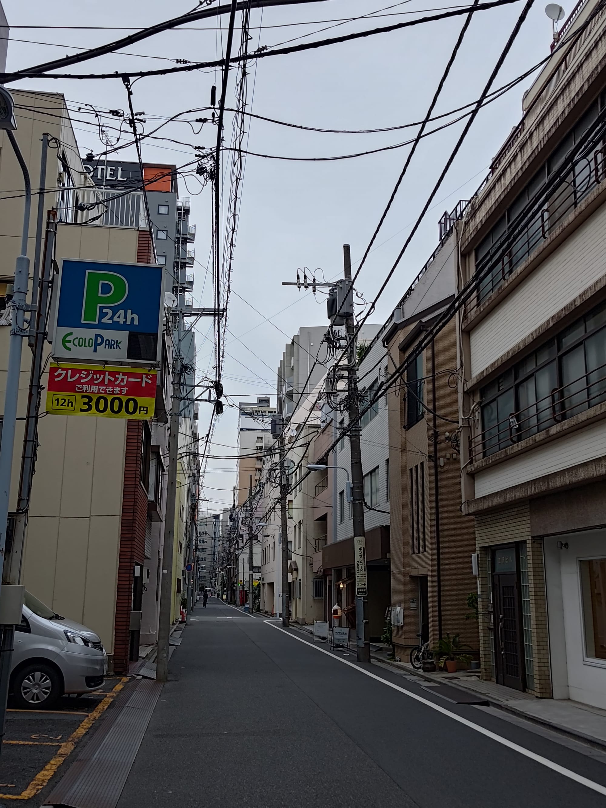 Pour finir, retour à l'hôtel en passant par le quartier de Yokoami qui, tout comme son homologue un peu plus au nord, est très résidentiel. Et si vous vous demandez pourquoi tous ces câbles apparents, c'est juste pour faciliter les réparations rapides en cas de tremblement de terre ou autre événement.