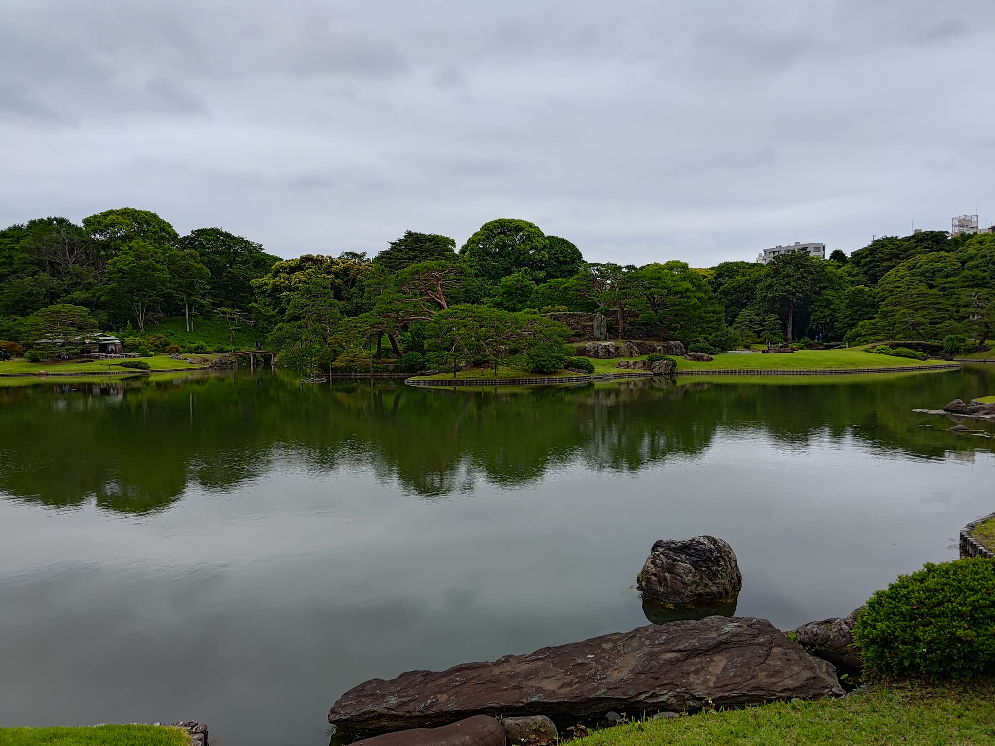 Pour continuer je me dirige vers le Rikugi-en, un autre des grands jardins de Tokyo. Celui-ci a été fondé par un puissant daimyo ai pied de sa maison. Il ne reste aujourd'hui plus aucun bâtiment (à part une sorte de petite pergola), mais le jardin en lui-même vaut le coup. Il a été créé en intégrant 88 références à des poèmes ou textes célèbres de l'époque (un poème parle d'un dragon qui surgit des eaux, et bien ils ont mis des pierres dans les lac pour imiter ce dragon. Ce qui est dommage, c'est que même s'il était très beau tel quel, le mois de mai n'est pas très propice à la floraison et sans aucun doute qu'à un autre moment il est encore plus beau.