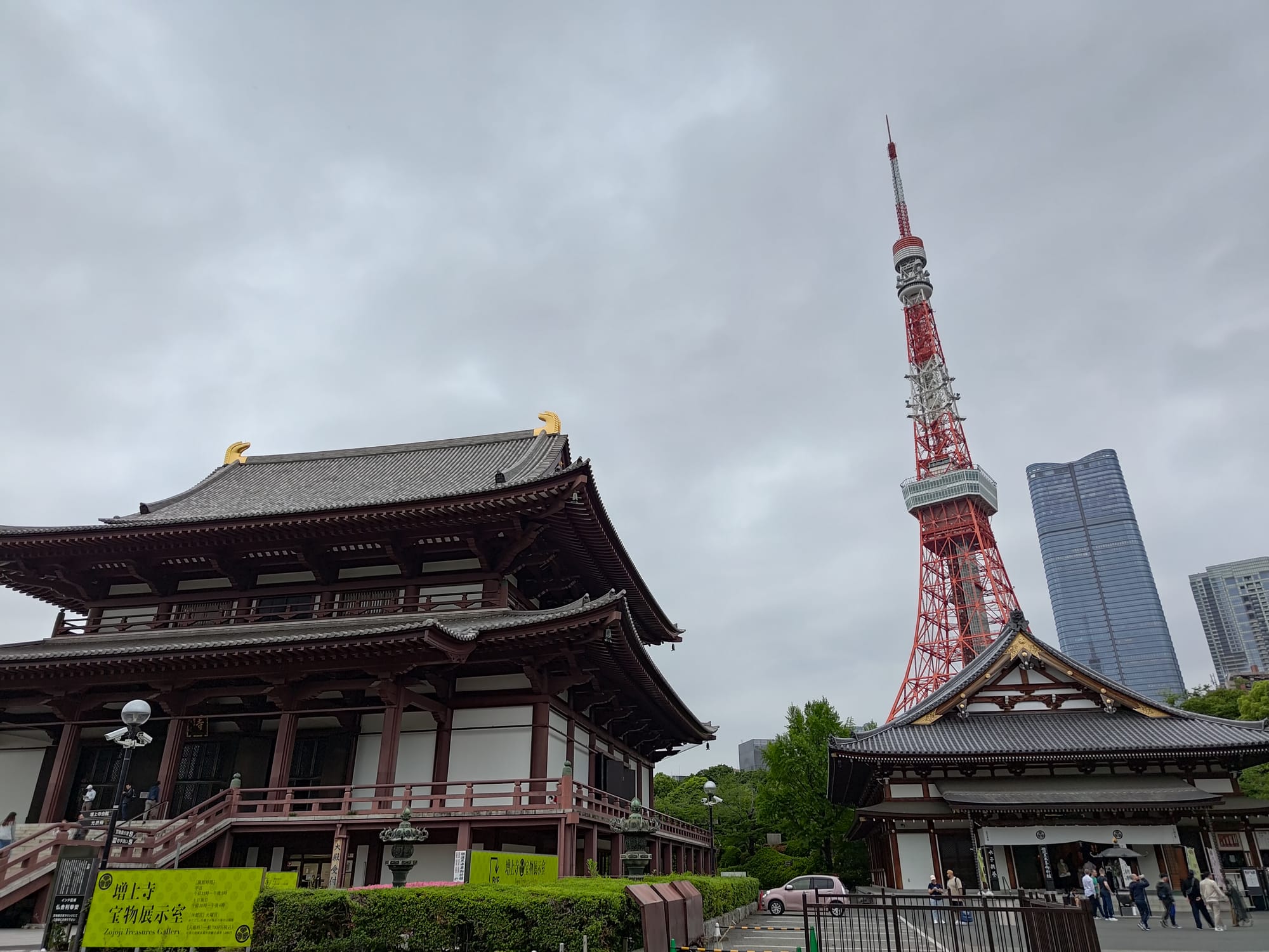Et pour finir la journée, qui fut bien longue, retour au pied de la Tokyo Tower où se trouve un temple que je n'avais pas encore eu le temps de faire de jour. Le fait qu'une partie ait été en travaux ne l'a pas forcément présenté à son avantage, mais il s'agit d'un très beau temple construit en 1622 par un des plus grand mouvement du bouddhisme (encore aujourd'hui) très proche du Shogun. Sa porte (qui malheureusement était entourée d'échafaudages) est le plus vieux bâtiment en bois de Tokyo.