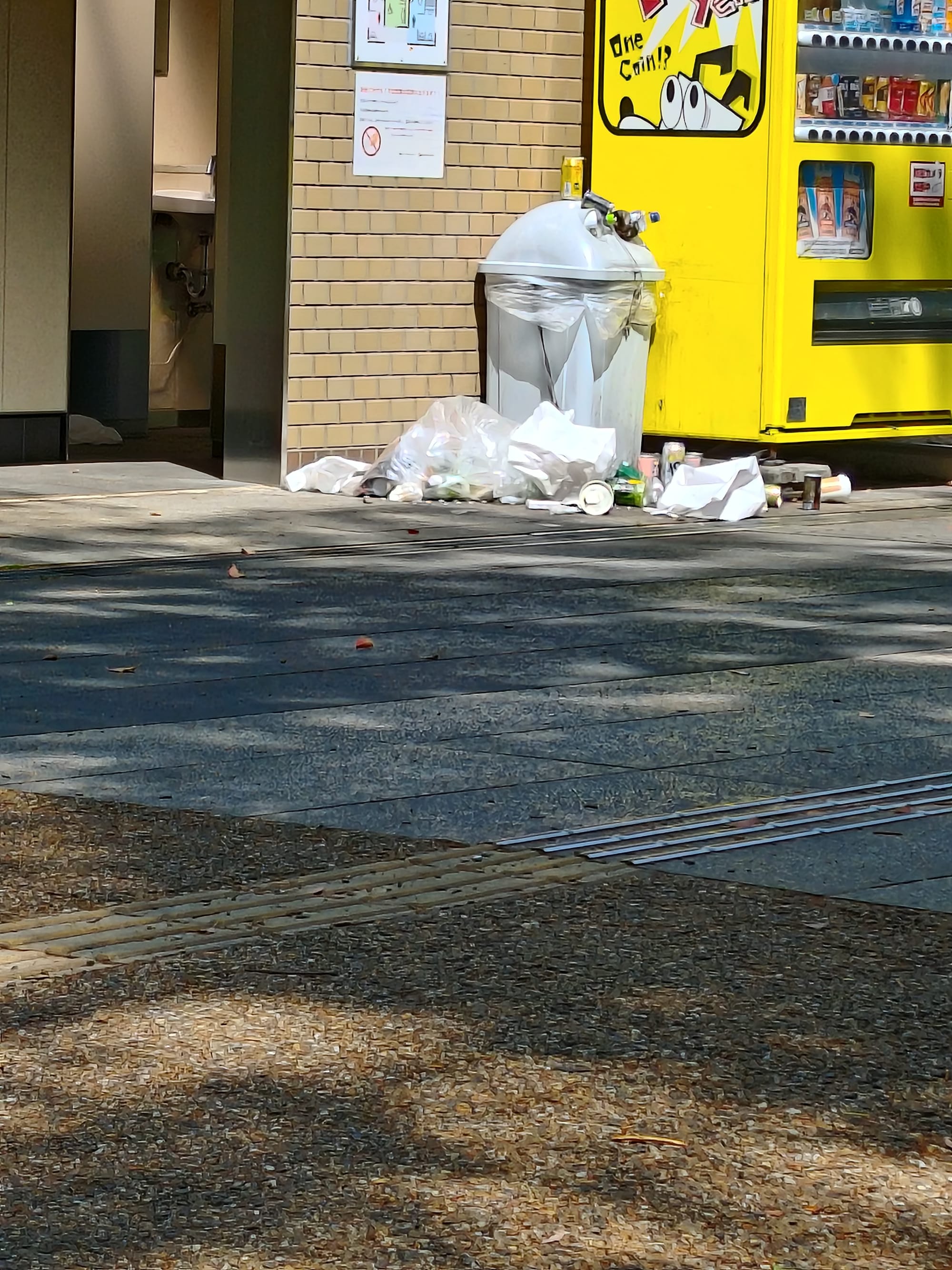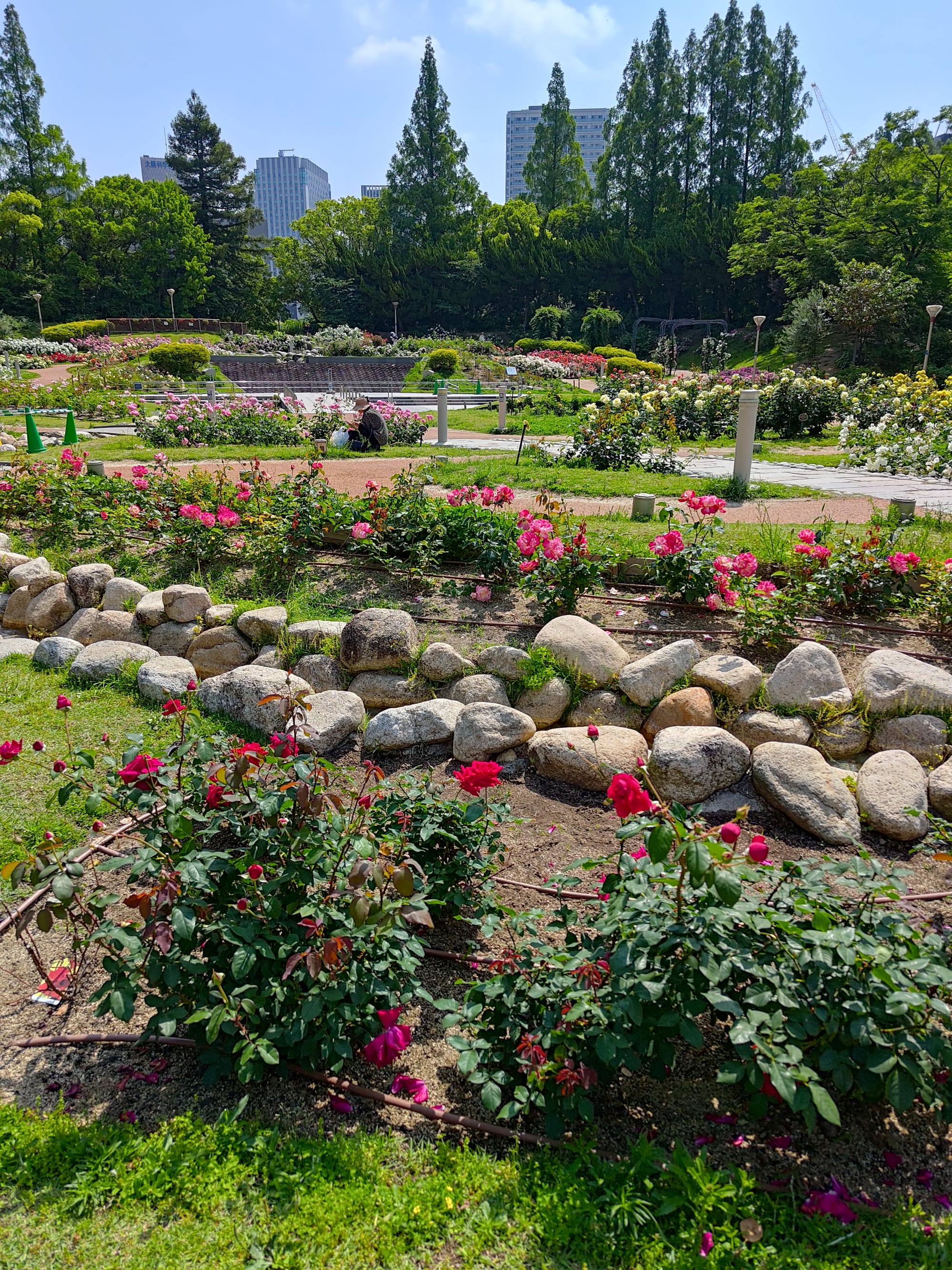 Arrivée à Osaka à 7h, on nous offre des patchs rafraîchissant pour lutter contre les courbatures (moyennement efficace, mais je sympa quand même). Je me repose un peu dans un parc non loin, assez beau d'ailleurs avec toutes ses roses. Par contre, c'est aussi l'occasion de voir que le Japon ce n'est pas que le pays très respectueux et très propre, et qu'il y a parfois des petits soucis, même dans une zone avec très peu de touristes. Sinon, il y a une chose que j'ai vite remarqué : le réseau de transports est moins dense qu'à Tokyo. Ce qui a par conséquent deux effets : non seulement on marche beaucoup plus, mais surtout les voitures personnelles sont réellement omniprésentes et le traffic est ininterrompu en heures de pointes.