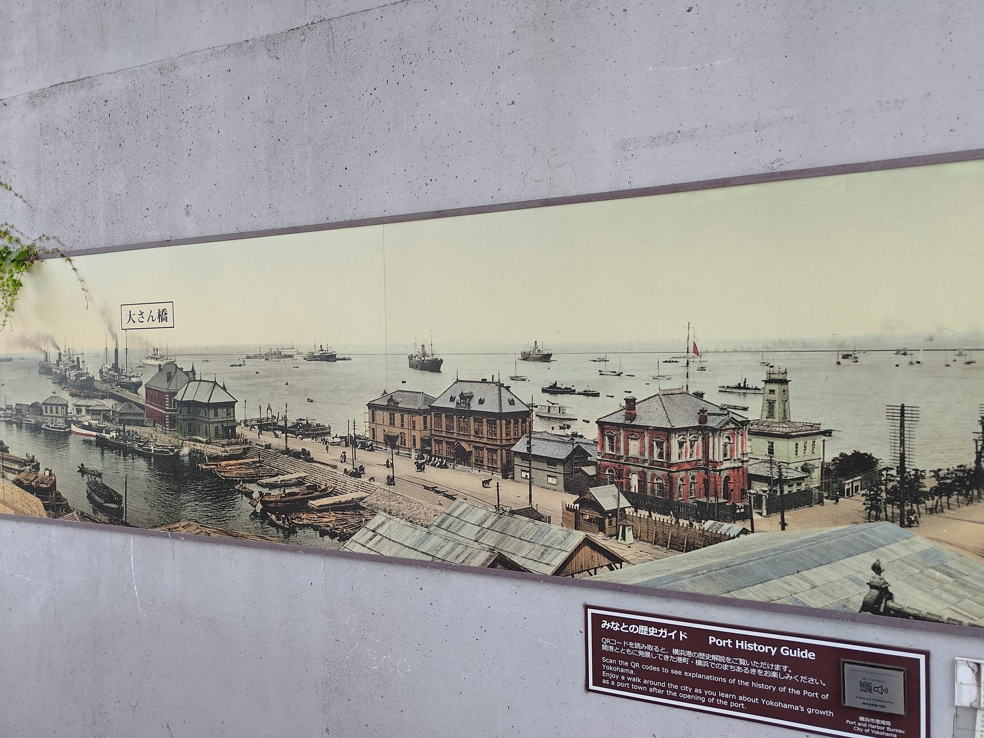 Bref, pour la visite de la ville, je vais me concentre sur le port. Parce qu'en fait, Yokohama est une des plus grande ville portuaire de la baie de Tokyo. En y allant, je tombe justement sur un panneau qui montre à quoi ressemblait le port jusqu'à ce qu'il soit détruit par tremblement de terre de 1923. On peut même voir les ruines de l'ancien bâtiment des douanes qui a été détruit à ce moment là.