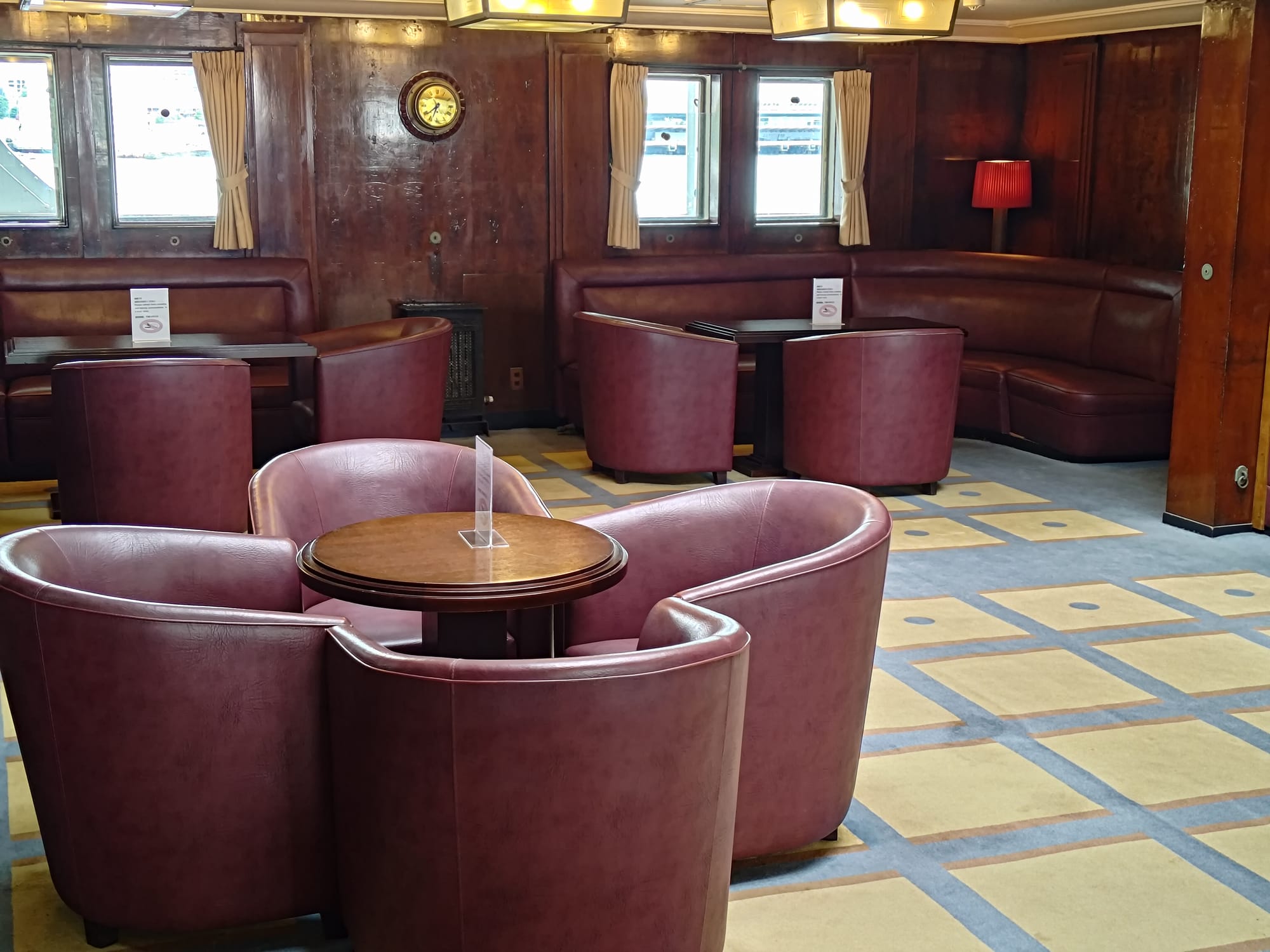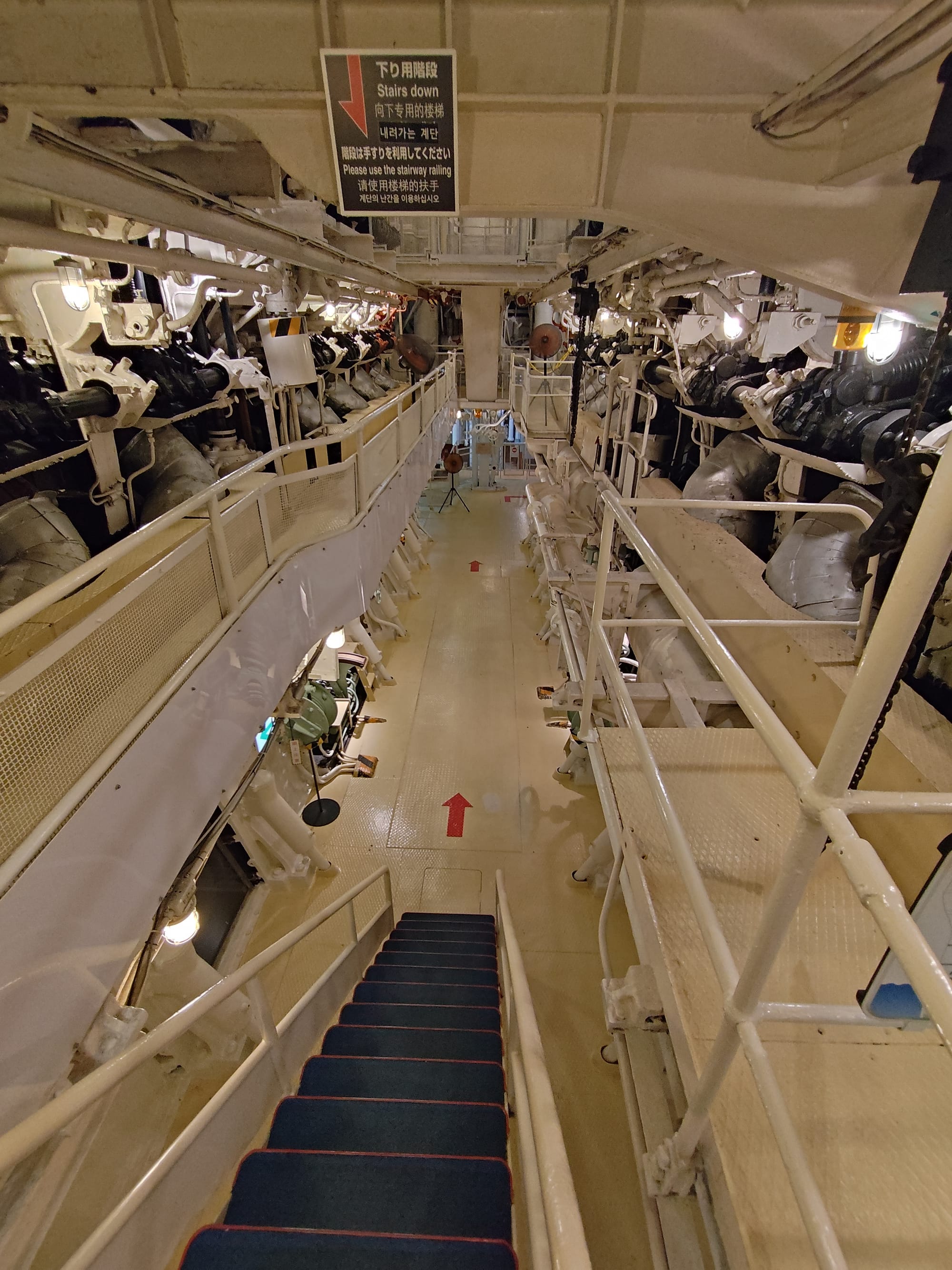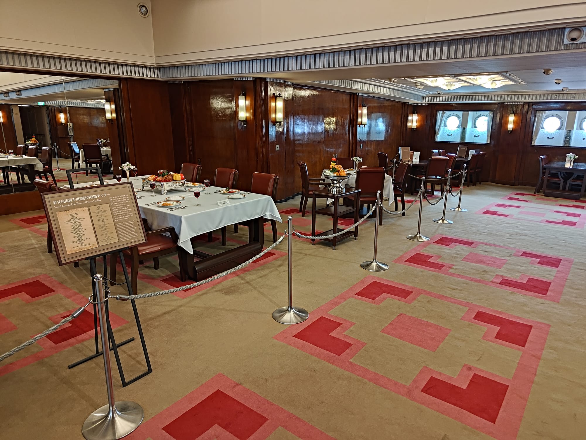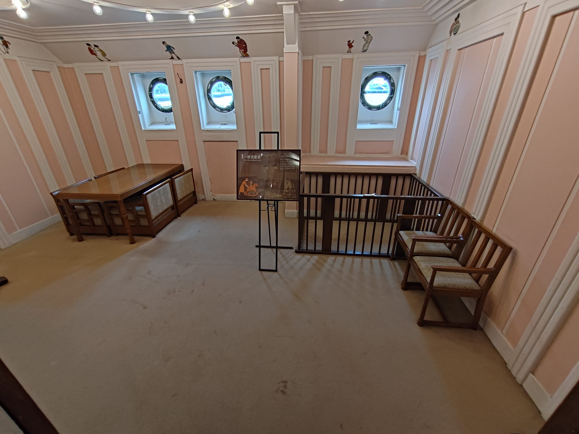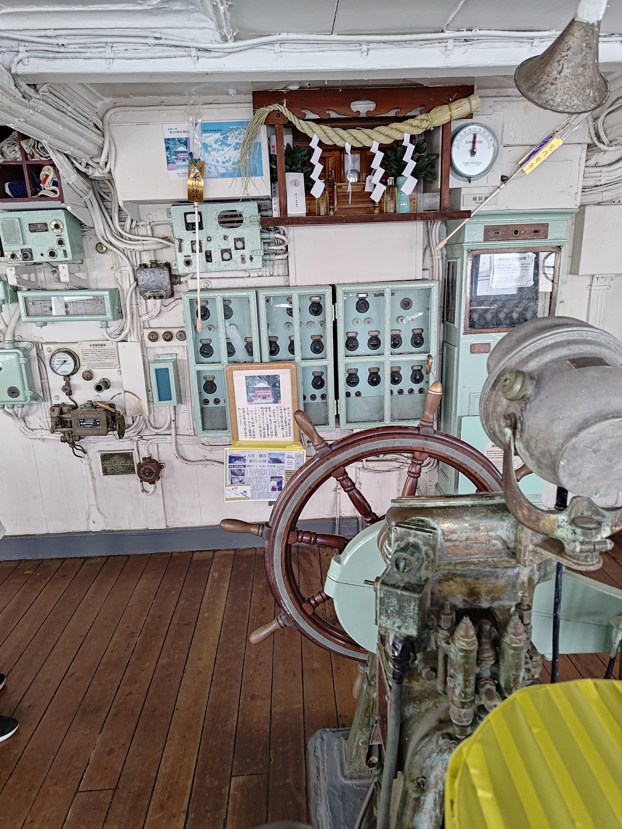 Du coup, plus loin il y a le Hikiwa Maru (ou Hikiwamaru, ils mettent les deux sur le prospectus), un vieux navire de croisière qui peut être visité. Construit en 1930 pour faire l'aller-retour entre Yokohama et les Seattle, il a été utilisé en navire hôpital lors de Seconde Guerre Mondiale avant de revenir à sa fonction initiale jusqu'en 1953. A l'intérieur, trois classe plus une suite impériale (qui a réellement servi à la famille impériale, plus précisément le prince) avec chambre, salon et salle de bain.