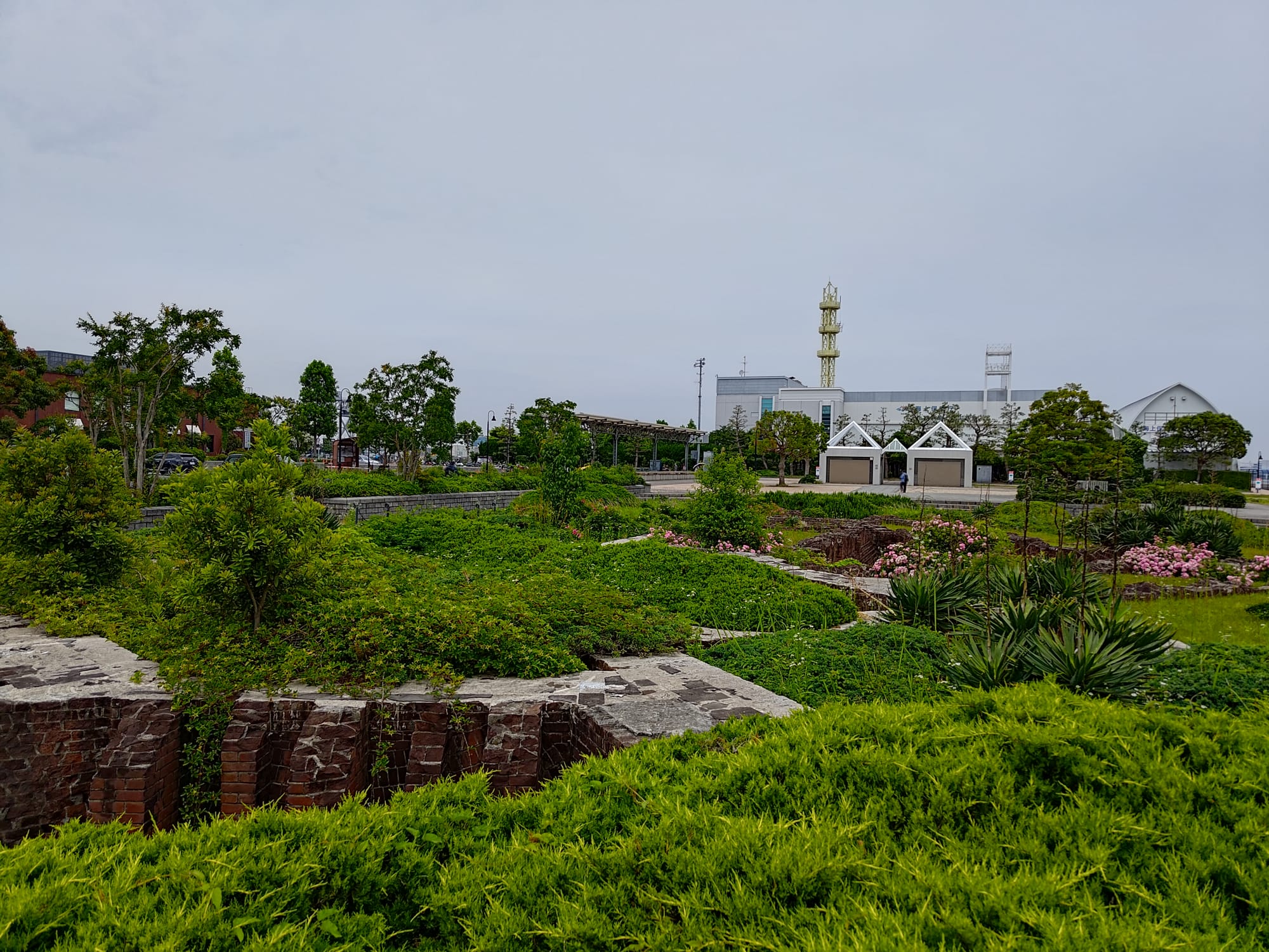 Aussi, sur les quais, il y a différents parcs dont un avec des très beaux bosquets de roses, rares points de couleur en cette période peu fleurie. Au milieu, il y a une fontaine construite autours d'une statue offerte par San Diego pour marqué les 50 ans des relations entre les deux villes (relation principalement maritime, évidemment).