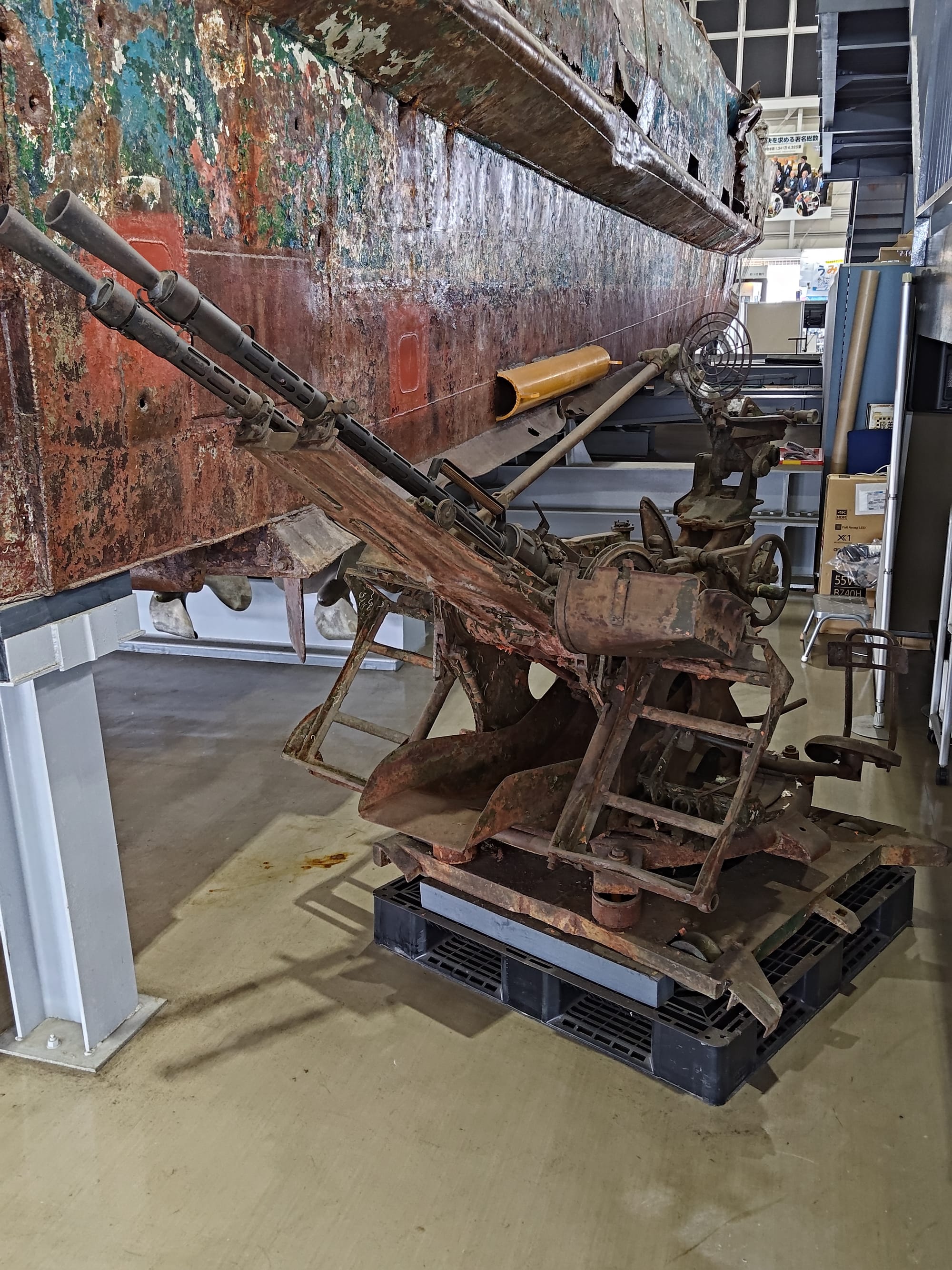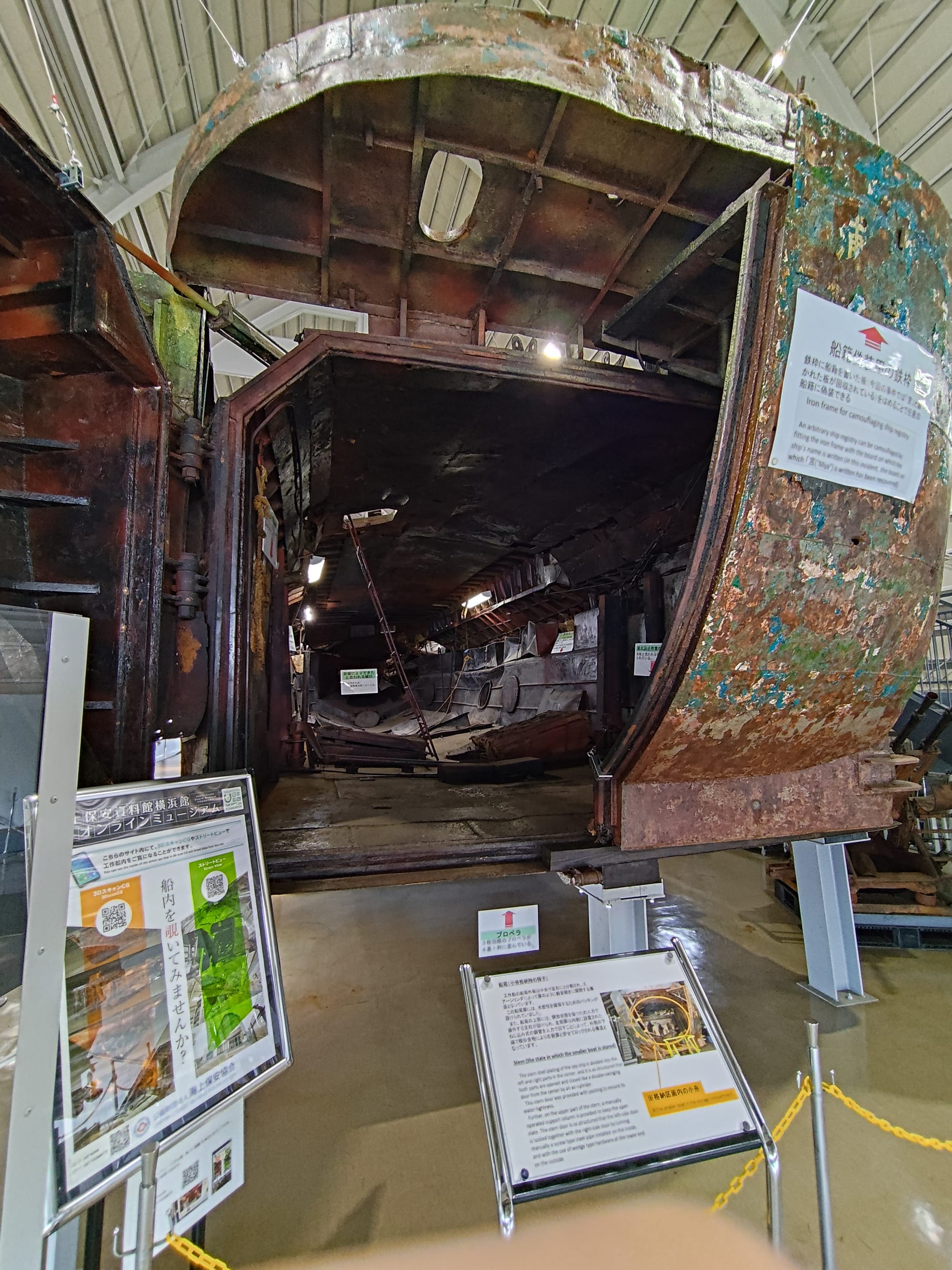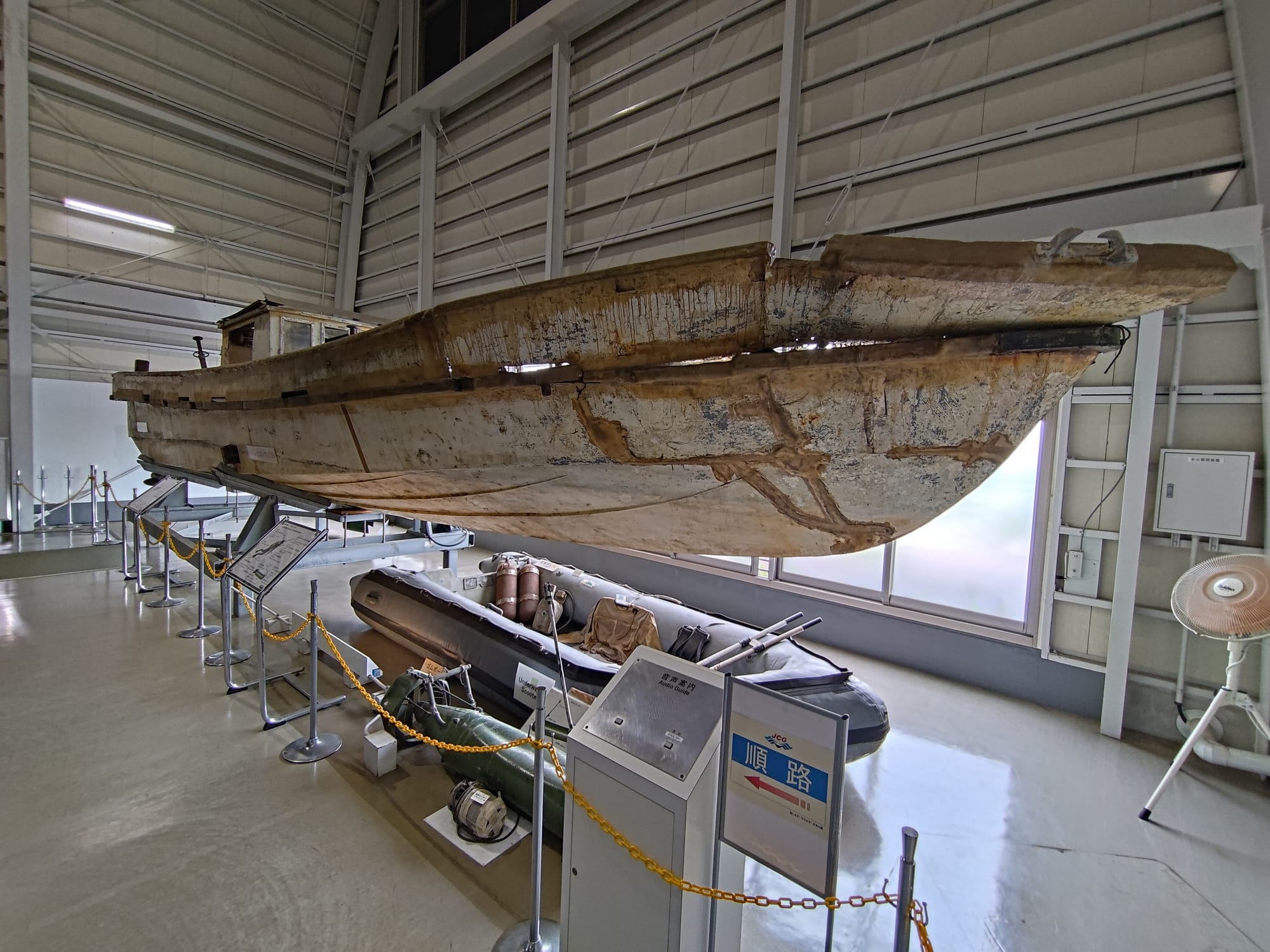 Une fois le tour du navire terminé, je vais à un musée non loin : celui de la JCG (Japan Coast Guard). Bon, en fait le musée est uniquement dédié à l'incident de la zone sud-ouest de la mer de Kyushu où un navire espion a été identifié et abattu par les gardes côte Japonais. Le navire a été récupéré pour enquête et maintenant il est exposé avec différents "objets" en rapport.